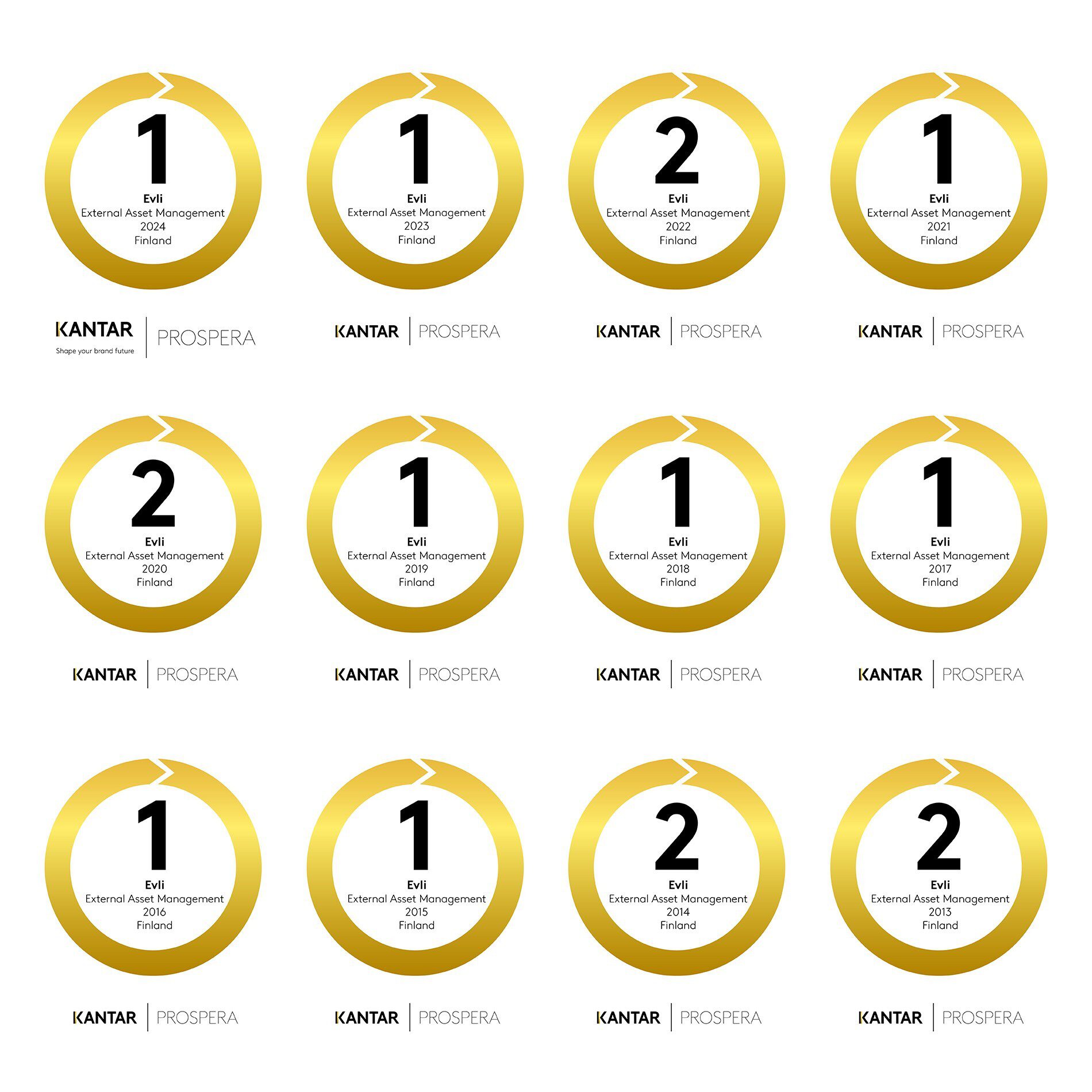 Ykkössija Kantar Prosperan tutkimuksessa on jatkoa muille Evlin saamille tunnustuksille vuonna 2024. Evli saavutti historiallisen kaksoisvoiton, kun rahastoihin keskittynyt analyysitalo Morningstar valitsi Evli-Rahastoyhtiön vuoden parhaaksi rahastotaloksi sekä Suomessa että Ruotsissa. Evli-Rahastoyhtiö palkittiin toisena peräkkäisenä vuonna parhaaksi pohjoismaiseksi rahastotaloksi Lipper Fund Awards -vertailussa kategoriassa pienet rahastoyhtiöt. Lipper on yksi maailman johtavia rahastoanalyysitaloja.