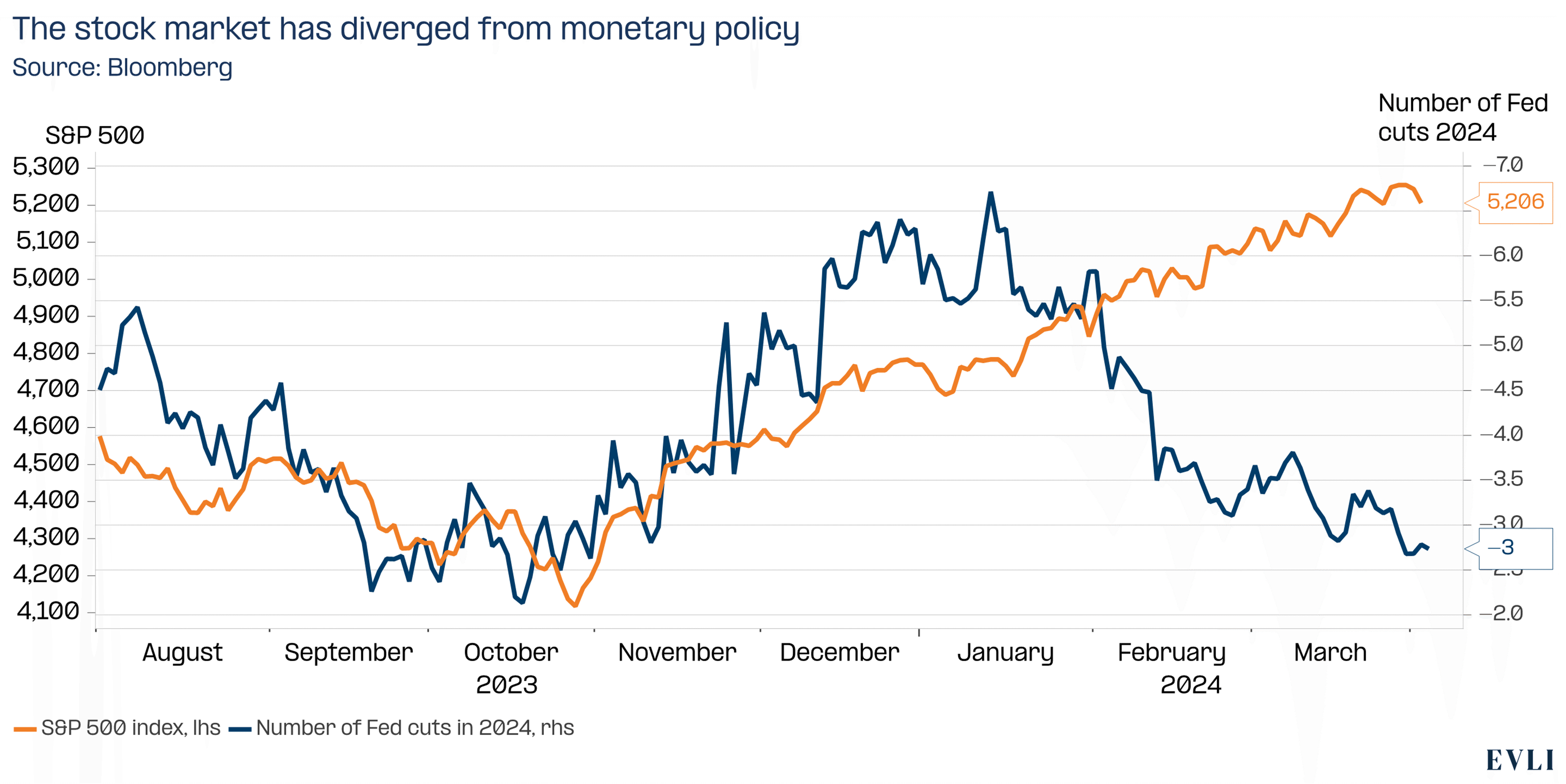 Yhdysvalloissa talouskasvu on ollut toistuvasti nopeampaa kuin ajateltiin. Ripeän kasvun nurja puoli on ollut sitkeämpi palveluinflaatio. Tavarainflaatio on jo pudonnut nollan tuntumaan, joten inflaation laskun täytyy jatkossa perustua palveluinflaation laskuun. Korkomarkkina onkin laskenut odotuksiaan koronlaskujen määrän suhteen selvästi. Vielä vuoden alussa markkina odotti seitsemää koronlaskua, nyt laskuja hinnoitellaan vain kolme.