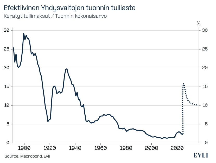 Kuvio 1: Trump nostaa tullit historiallisen korkealle tasolle