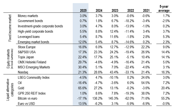 AI played a central role in US economic growth, while simultaneously fueling concerns about an equity market bubble and a slowdown in job growth. Europe’s economy struggled with structural challenges and weak public finances, particularly in France and the UK. Germany’s new government approved a major investment and defense program that is expected to support the country’s economic growth in the coming years.