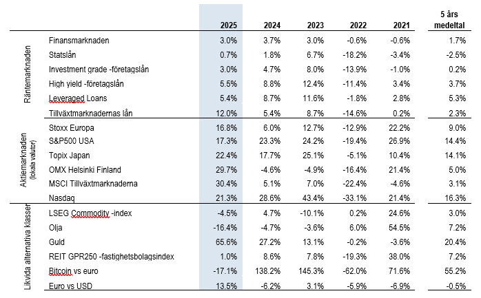 De europeiska och nordiska aktiemarknaderna var fortfarande livliga. Indexet MSCI Europa steg med 2,8 procent, indexet OMX Nordiska länderna med 4,4 procent och Portfolioindexet OMX Helsinki med hela 4,9 procent.